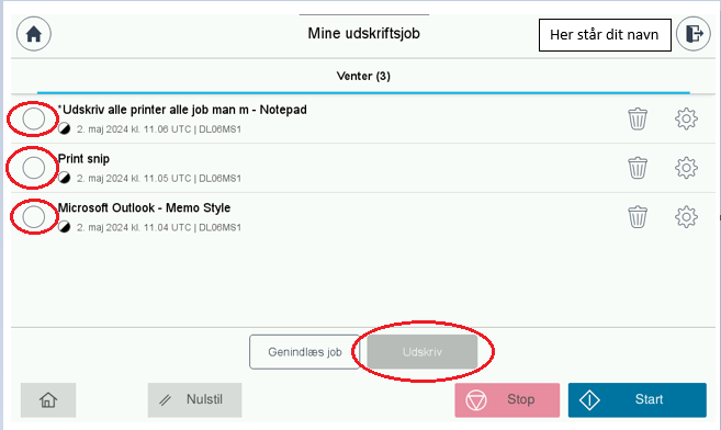 Klik på ”Mine udskriftsjob” hvis du vil udvælge nogle af de jobs du har sendt til print.