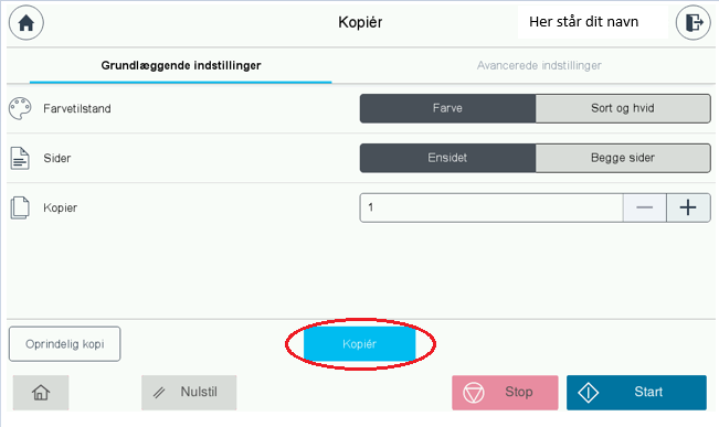 Vælge de ønskede indstillinger og klik på kopier.