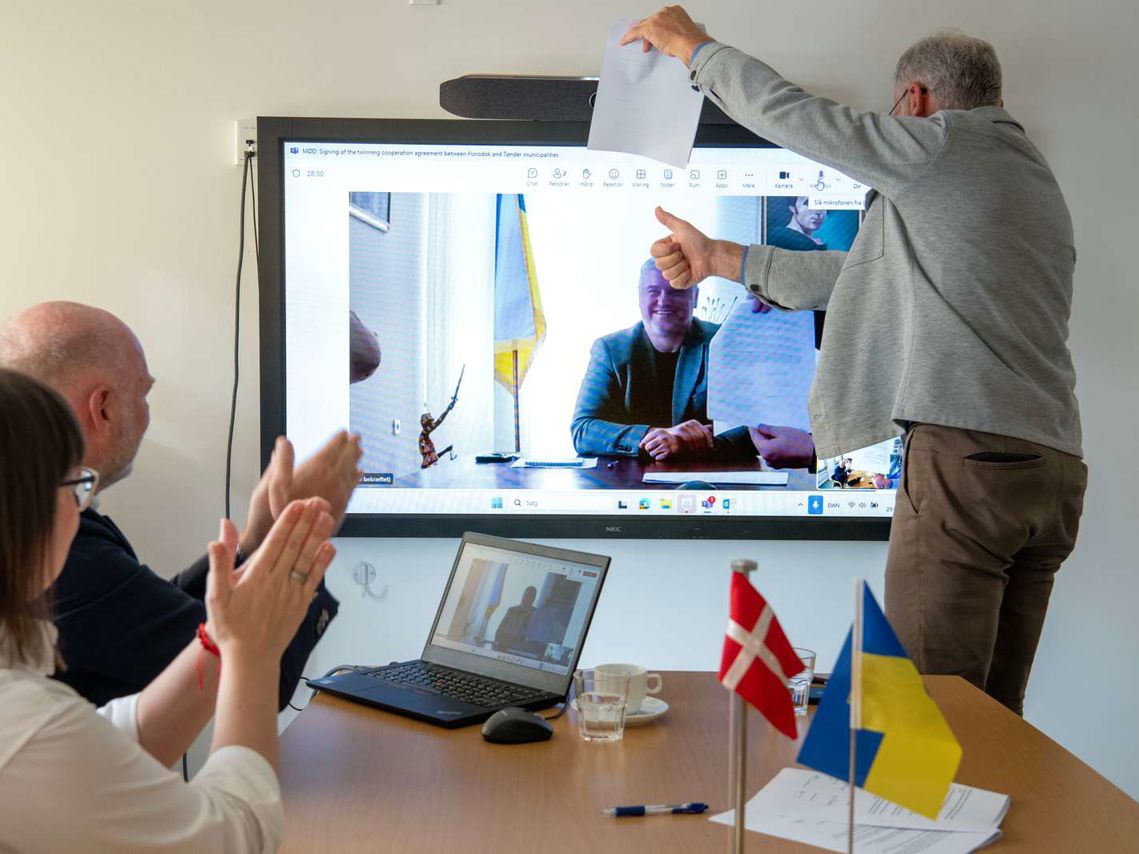 Tønder Kommune og den ukrainske kommune Horodok er nu forbundet som venskabsbyer. Aftalen blev underskrevet i dag – på et digitalt møde, hvor der både blev klappet og sendt tommelfingre op på tværs af landegrænser.
