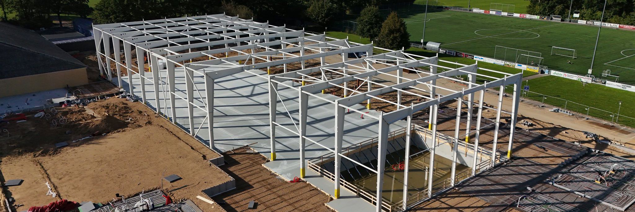 Siden det første spadestik i april har der været stor aktivitet på byggepladsen, og det nye idrætscenter begynder nu for alvor at tage form. Projektet gennemføres for en samlet entreprisesum på 69.999.000 kr., og arbejdet forløber planmæssigt frem mod færdiggørelsen i august 2026.