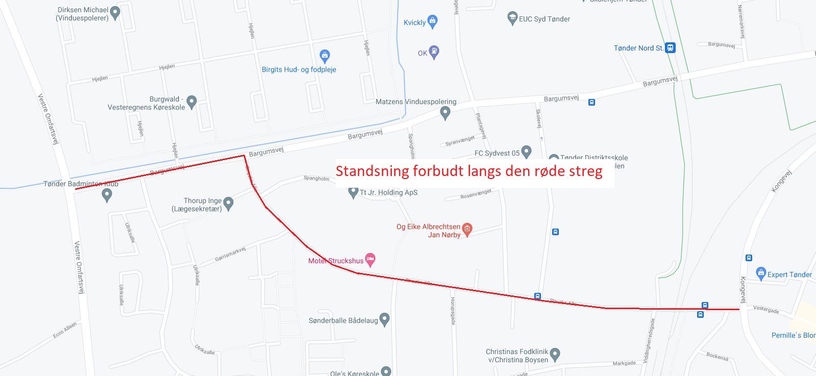 I Tønder bliver der ligeledes indført standsning forbudt på to veje: Bargumsvej og Strucksallé.