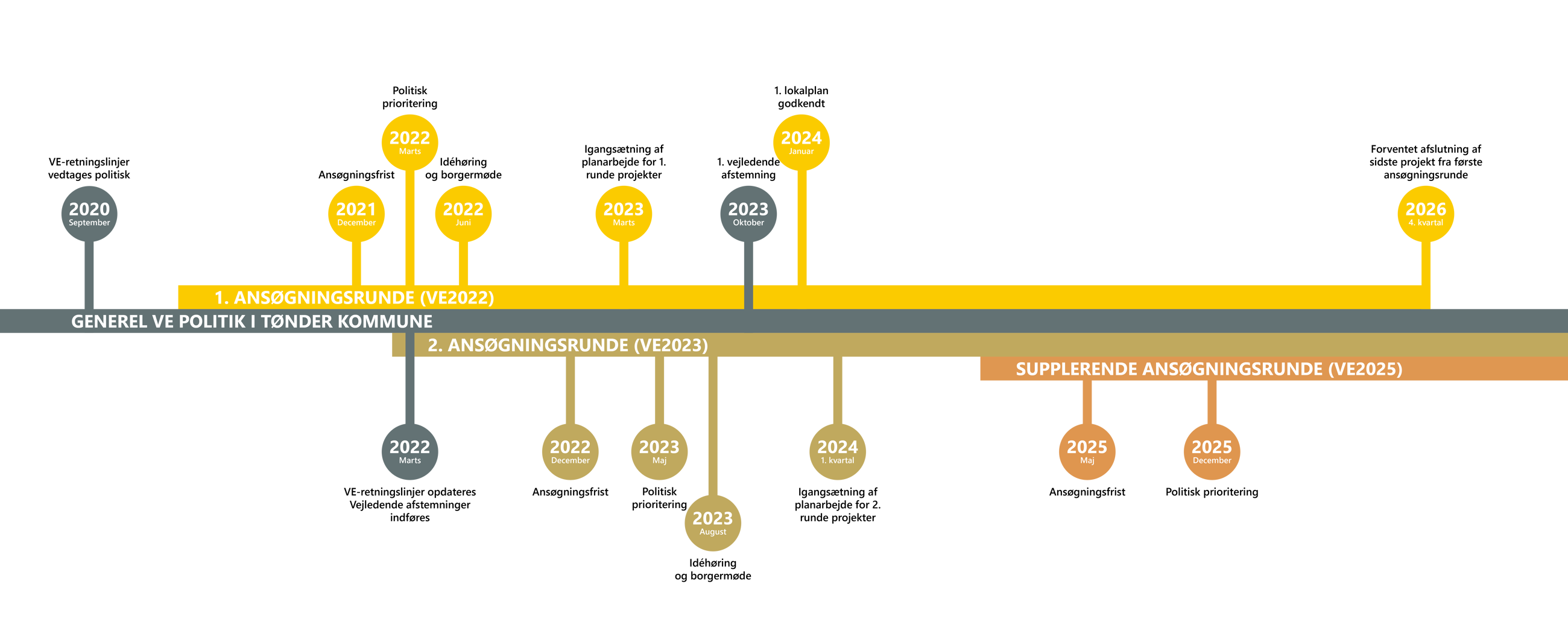 Tidslinjen viser et generelt overblik for Tønder Kommunes VE indsats.
